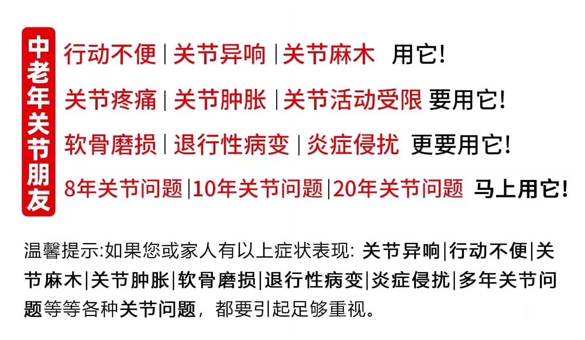 您几年,十几年,几十年都调不好的,您就用关节肽调理法!不想再被膝关节疼痛困住双腿的,您也来用关节肽!不管您现在关节疼痛多严重!多厉害!
